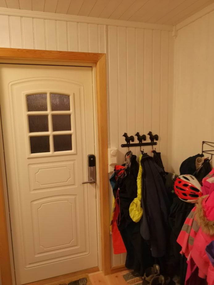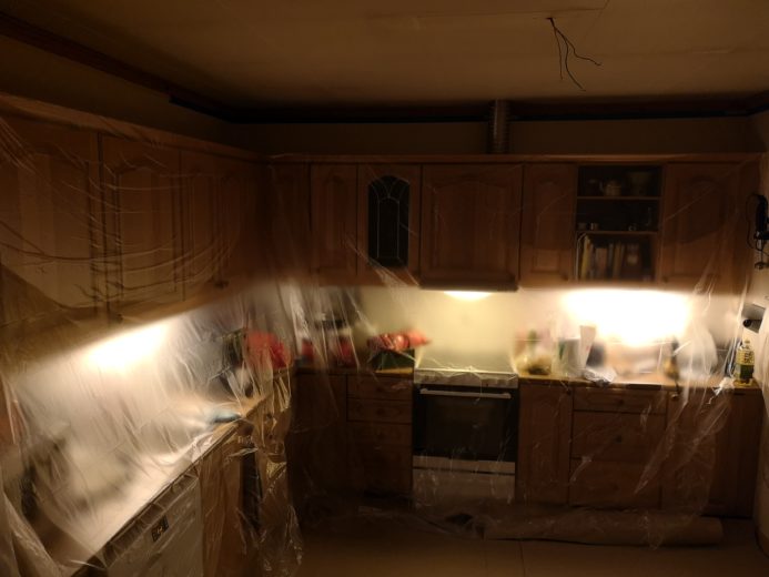 Nu kan julefreden senke sæ! To soverom, mellomgangen, yttergangen og sist men ikkje minst kjøkkenet e nu ferdig pussa opp på 8 uker. Kjøkkenet blei tatt i dag, tak og taklist malt hvitt, nye lys…