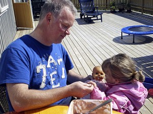 I går fant ho Elena ut at dukka skulle få sæ is. Det fikk den, som dokker ser 🙂