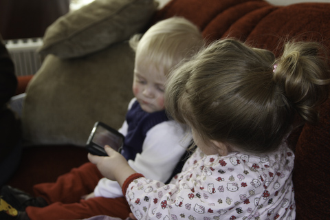 Ho Elena fant ut at han Håkon måtte komme ut av steinaldern, og meinte at den beste måten å gjøre det på hva å vise han at man faktisk kan se Mummitrollet på Youtube – på en iPhone. Her ser dokker de to søskenbarnan, konsentrert som få!