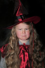 Elena klar før Halloween, sminka av ho tante Heidi og med gresskaret vi laga i går. Uhu uhu…