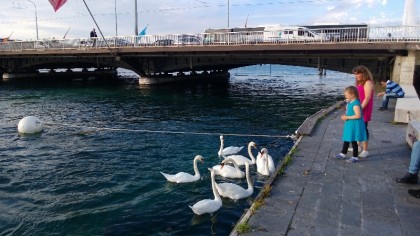 Ho Elena fikk brød av noen fremmede som kjapt gikk videre tell svanan som farta rundt på elva.