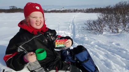 Fra huset, rett ut i løypa og opp tell Storvannet kor varm saft og kvikklunch blei fortært før returen..