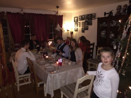 Familiemiddag og tradisjon tro – familien Kurkela-Marjala i andre enden av husrekka på kalkunavslutning på 2014
