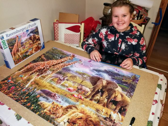 Lill og Elena har en fast tradisjon, hver jul – å pusle. Gjerne et gammelt som har vært puslete tidligere, men i år fikk de et nytt med masse dyr og planter. Starten var 1. Juledag, og avslutningen kom nå i formiddag, 1500 brikker senere 🙂