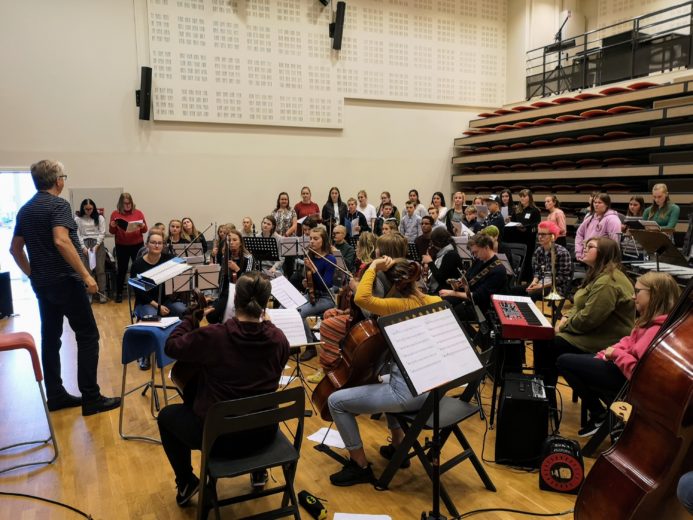 Elena på korøvelse på Sortland i dag ifm «Barndom i Flo og Fjære»