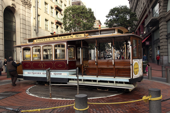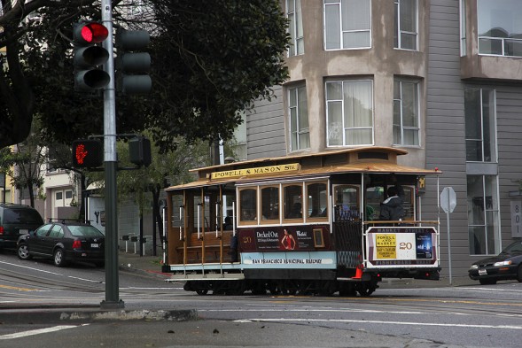 Endelig fikk æ tatt en tur med den berømte kabelbanen i San Francisco. Det e jo min tredje tur tell byen sia 1999, og andre tur bare i 2009 (februar og nu), men aldri før har æ tatt mæ en tur med «trikken» som faktisk draes opp og ned bakkan i byen med en kabel …