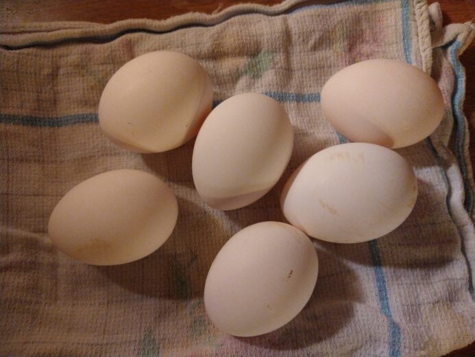 Vi har hatt dem siden august, men 5 egg har vært fast antall inntil en av hønene ble «klukk» litt i desember. Da gikk vi ned i 4 inntil hun ble frisk igjen nylig. Nå plutselig har den sjette høna tatt fatt på sin gjerning. Og det i et skikkelig drittvær med -7 grader og …