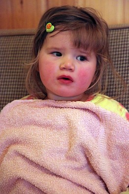 Det siste døgnet har ho Elena hatt skikkelig omgangssyka før første gang. Det starta i går kveld i halv 9 tia med oppkast og … Det blei ei natt med nattevåk, spy og fremdeles anna… 3 sengeskift, 2 tima søvn, masse vasking og ei meget syk Elena. På bildet sett ho i sofan nu i …