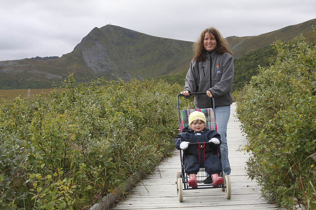 Søndagsturen gikk langs trestien tell Møsjekroken. I bakgrunnen skimtes værradaren oppe på Trolltind.