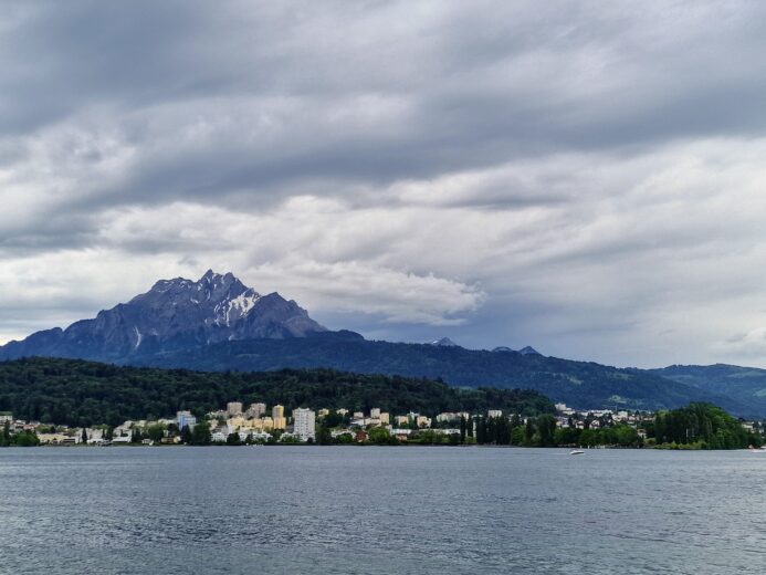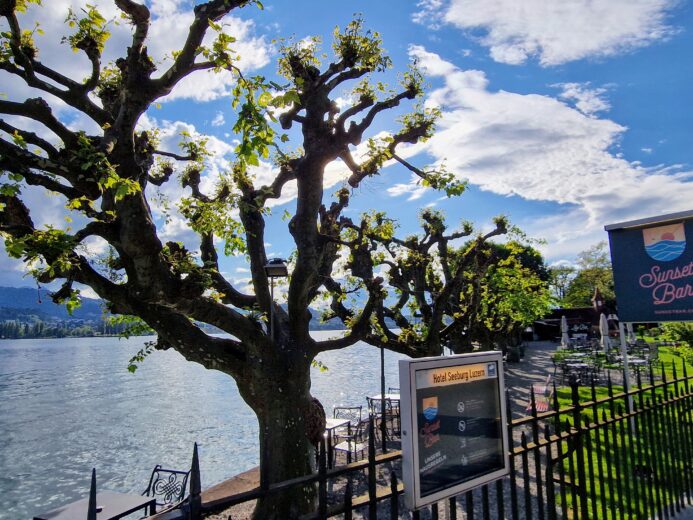 Utsikta fra Seeburg hotel, Luzern, Sveits