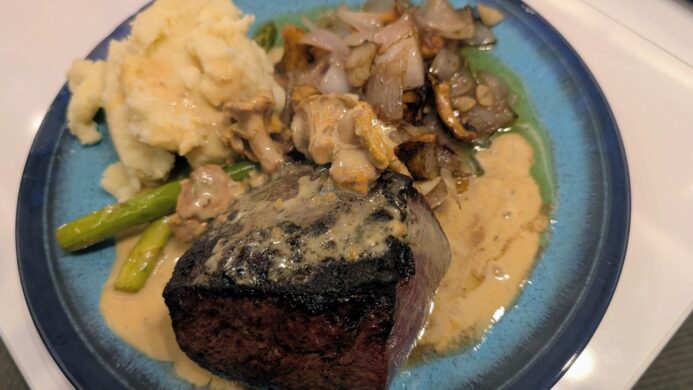 Hjort fra Sogn, Sjalottløk , asparges og kantarell, potetmos i vogna