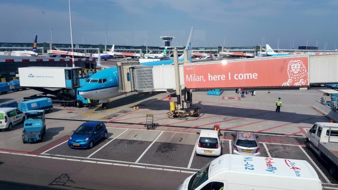 Etter ødelagt flysete som forårsaket 1 times forsinkelse fra Houston i Texas, 1 time og 30 minutters taxing rundt på Schipool ved ankomst grunnet oljelekkasje på gaten vi skulle ha, flyet til Oslo stakk mens vi taxet rundt, flyttet over til KLM fly som så ble kansellert, så står jeg nå og ser at landgangen …