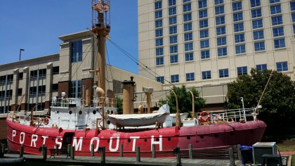 Norfolk e en skikkelig havneby med enorme tørrdokker som US Navy bruke. Her e et gammelt fyrskip som ligg på land, rett bak hotellet.
