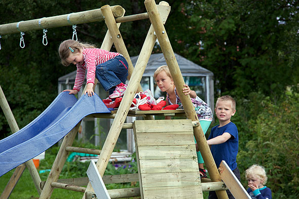 I går va vi på besøk med grilling hos Lill sin bror Frode og hannes familie i Sandefjord. Ho Elena storkosa sæ med pølsa og brus sammen med søskenbarnet Victoria 🙂