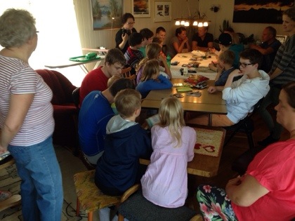 Ifm bryllupet tell Rudi og Heidi va det i kveld samling og familiespill hos Øystein og Evelyn. Nesten alle va der…