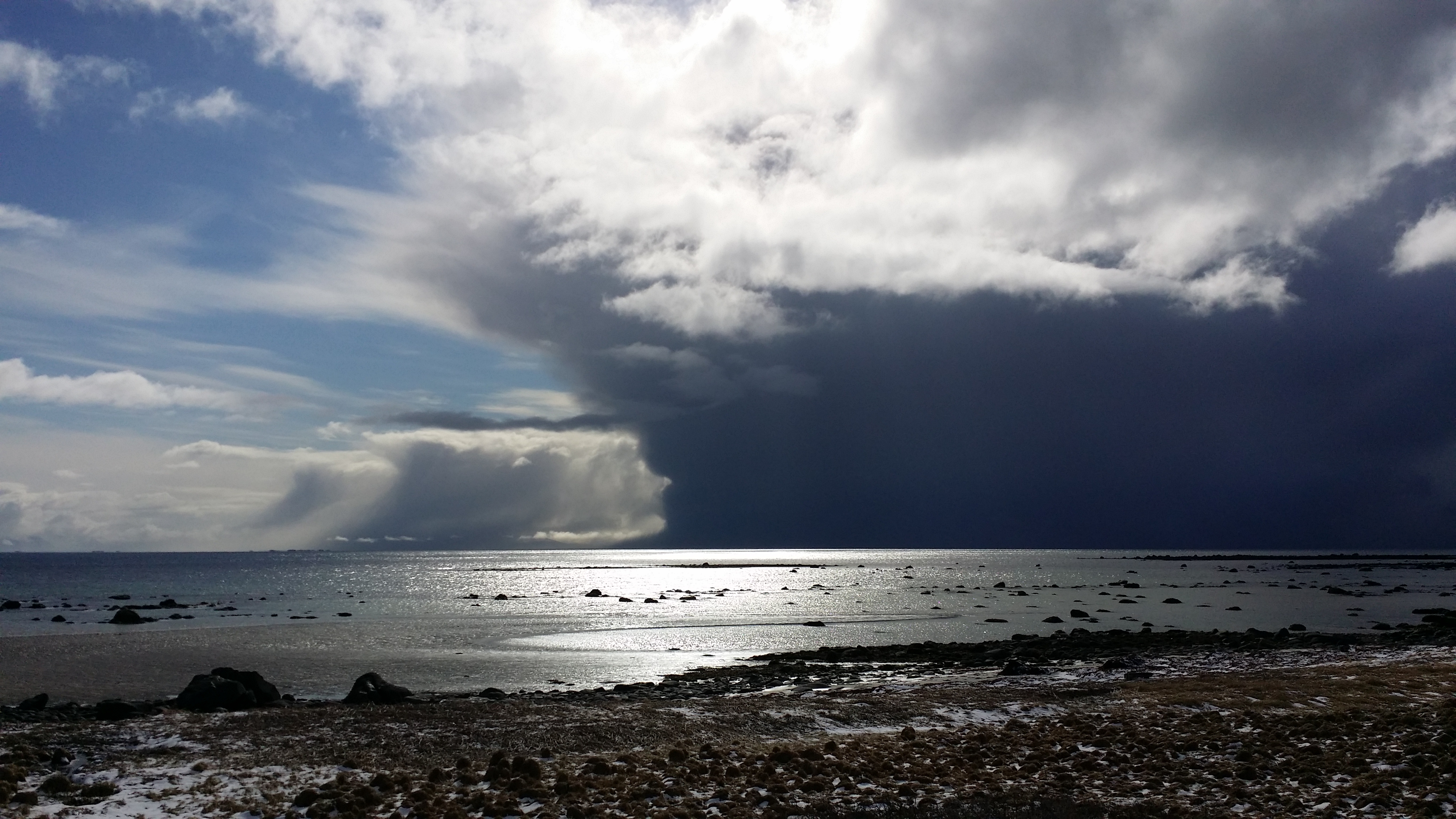 På tur innover tell Dverberg bære måtte æ knipse denna feite bygeskyen som tømte sæ over Senja.