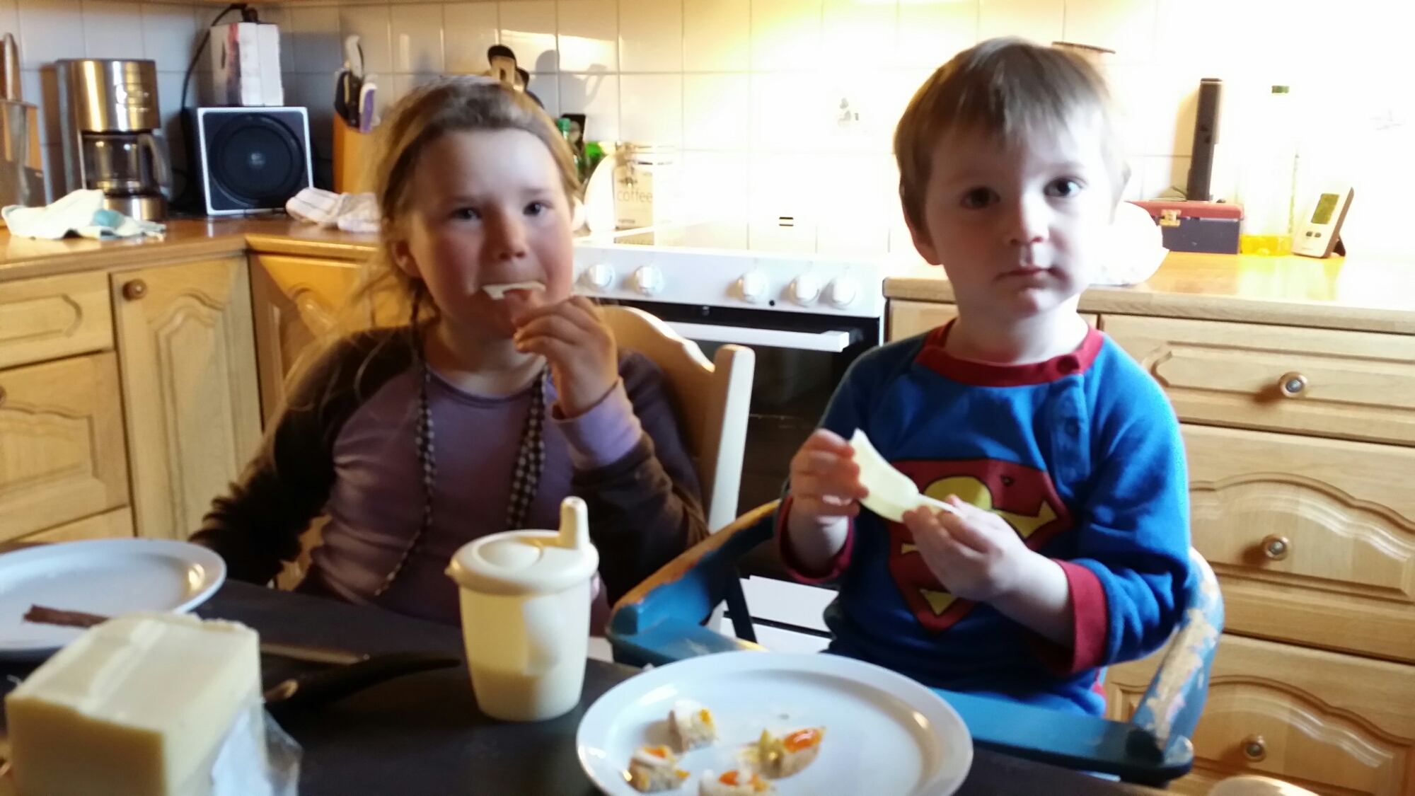 Han Bendik e på besøk, og ho Elena storkose sæ under frokosten med han.