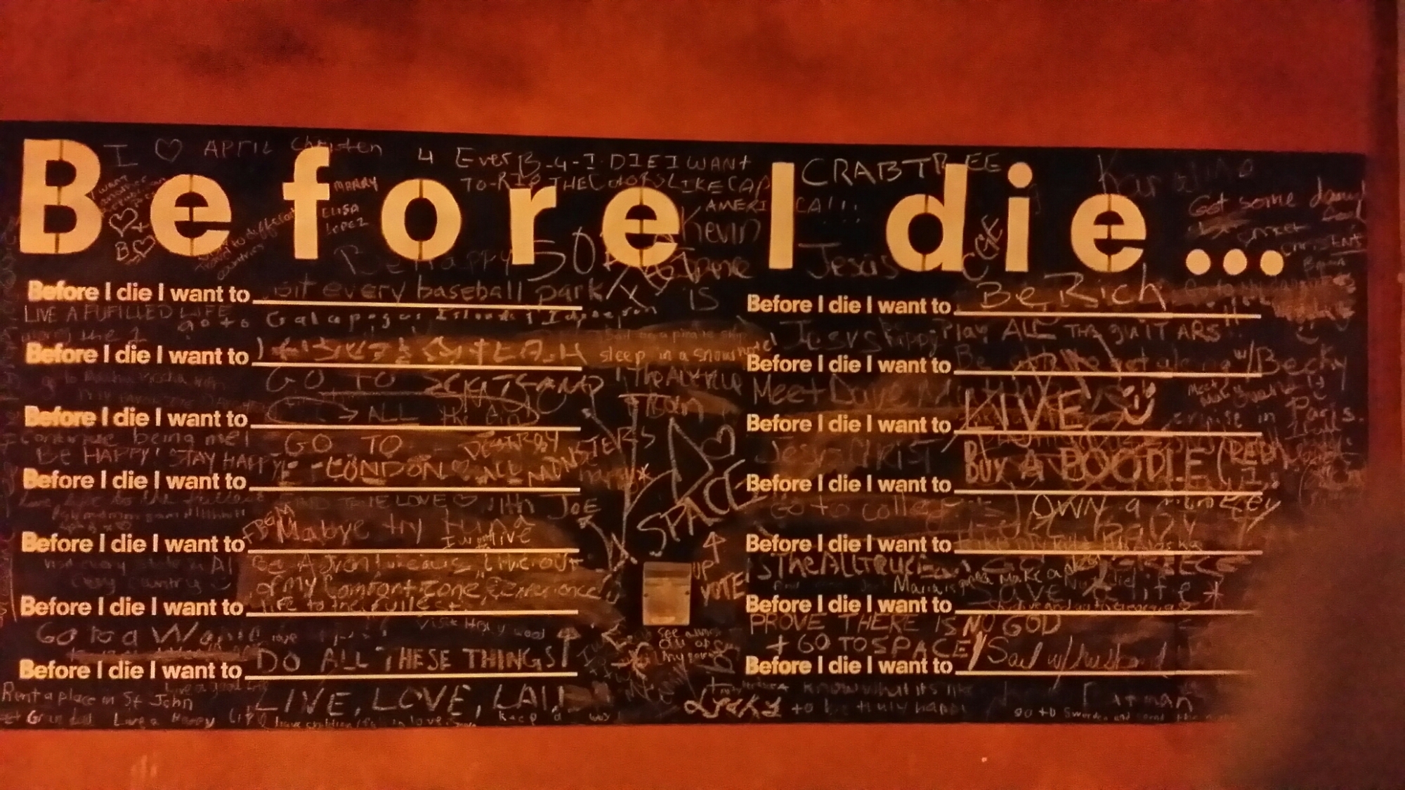 Midt i sentrum står to tavle som alle kan skrive på. Kor skreiv æ?