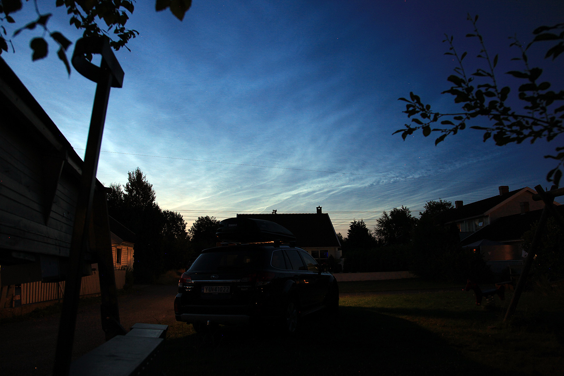 I natt va det Nattlysanes skya å se på himmelen fra Sandefjord. Dem e oppe i ca 86 km høyde, så dette e skya på himmelen over Nord-Norge, egentlig ute i verdensrommet med den høyden.