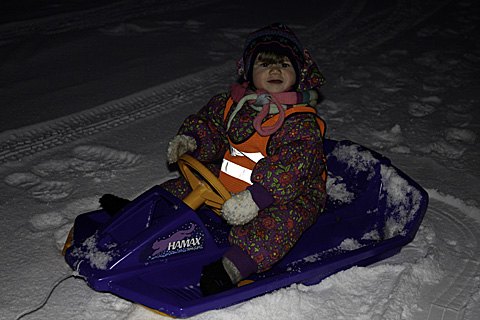 23.12 2008: Elena på akebrettet - på tur tell ho tante Heidi