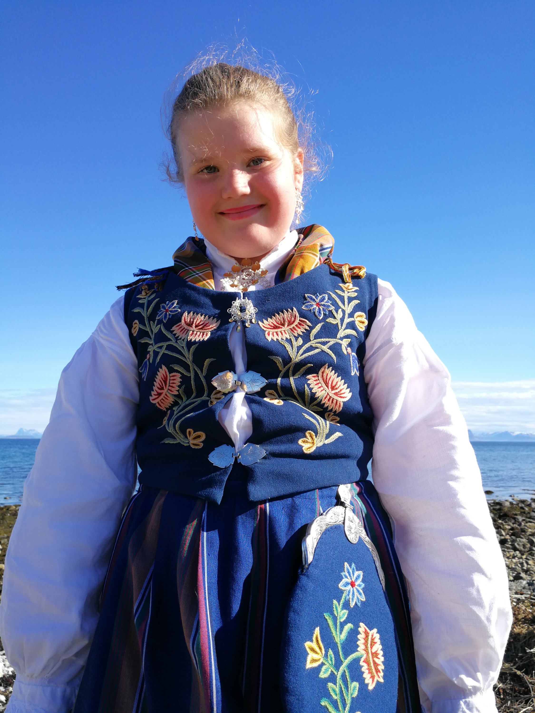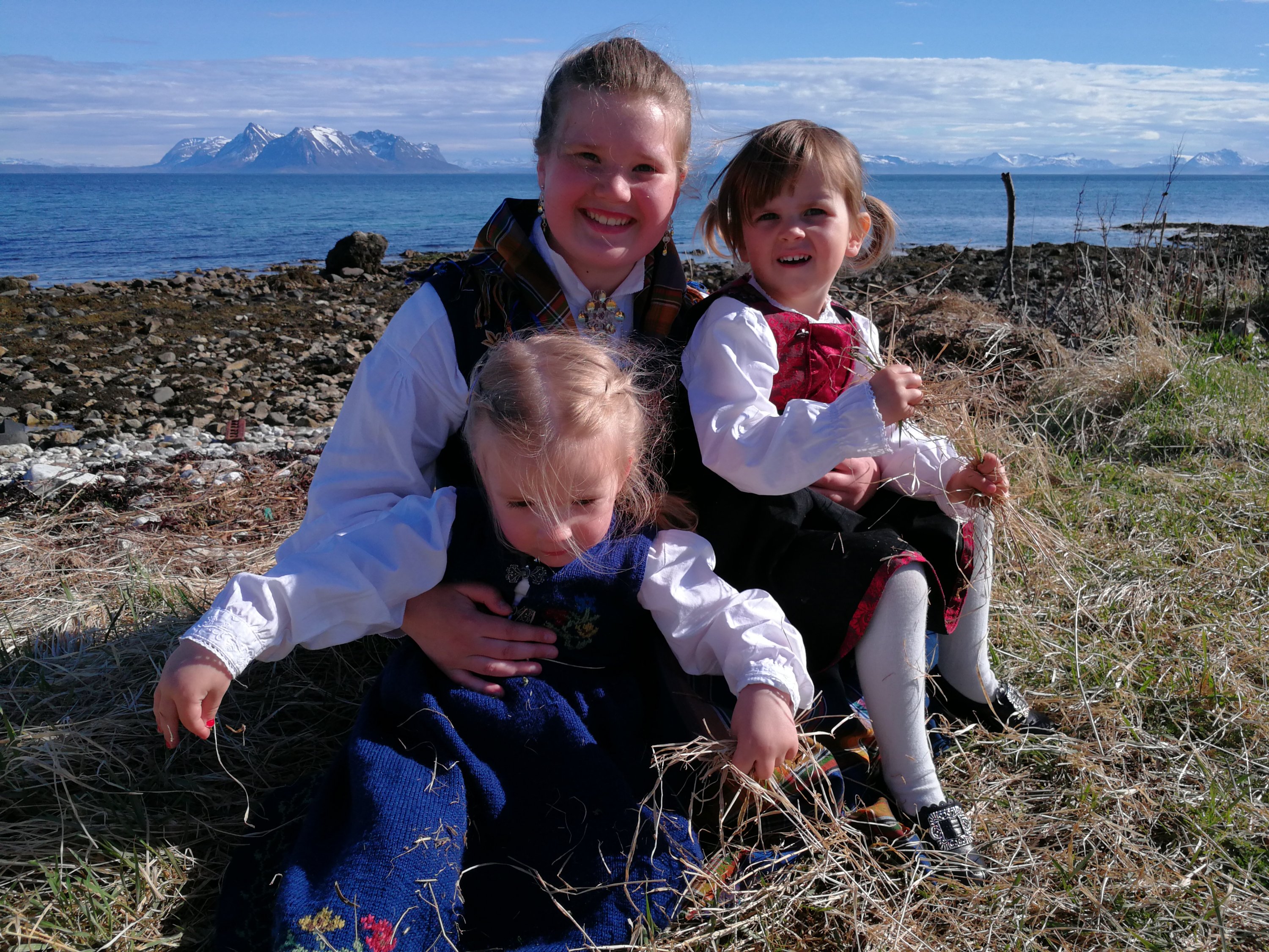 Flotte jenter i bunade og godvær på Dverberg ifm Ulriks konfirmasjon.