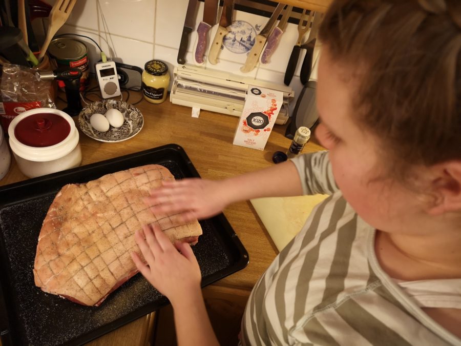 Siste omgang med ribbe for denne jula, og Elena har ansvaret for ruting av svor…krydring er også hennes ansvar. Rutingen med venstre hånd har gått helt etter planen!