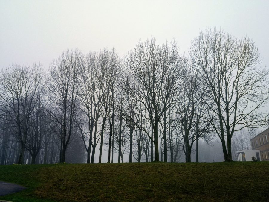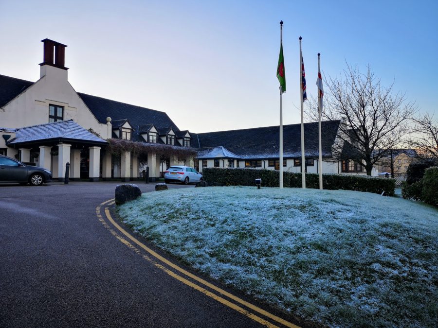 Flotte bygg i kveldslys her borte23.1: Ikke et vanlig syn på vestkysten av England, men i dag var det frostI går, 22.1 – mer vanlig; TÅKENoen kjører standsmessig til universitetet! En professor???