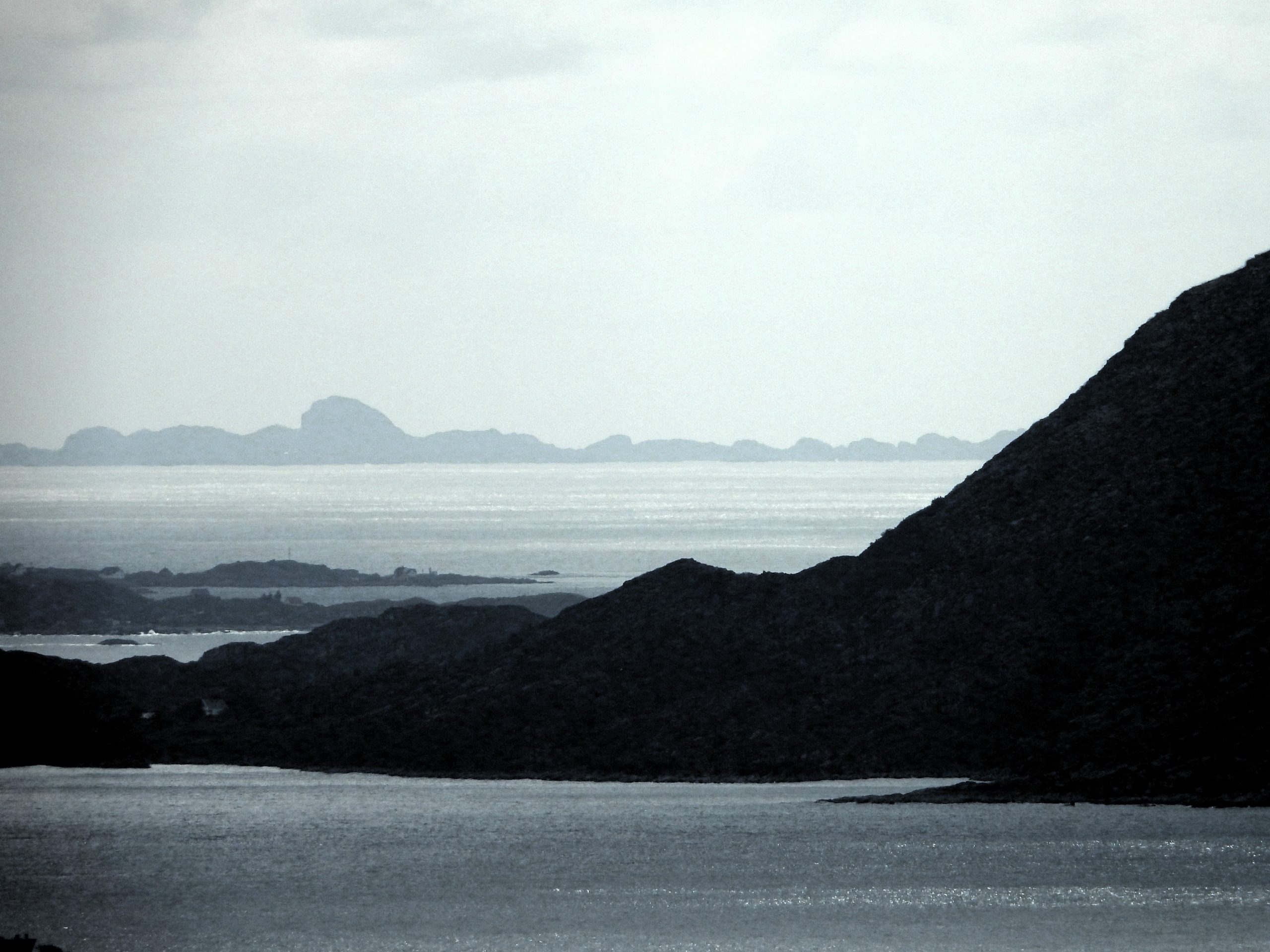 Fra fjellet over Kalvåg; utsikt utover mot Værlandet – langt langt der ute