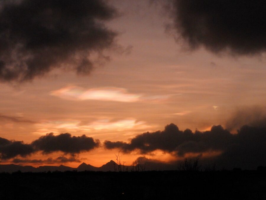 Rett over Grytøya henger de – perlemorskyene som bruker å dukke opp ifm uvær på denne årstiden