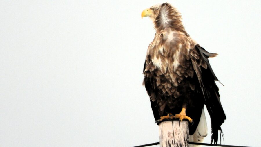 På tur hjem fra nattas opphold i campingvogna på Dverberg, kom man over to ørne som satt på hver sin stolpe, et par hundre meter unna riksveien. Det var for mye snø til å gå nærmere, og dessuten flyr de som regel avgårde straks man kommer ut av bilen. Men Nikon Coolpix P1000 klarte den biffen også!