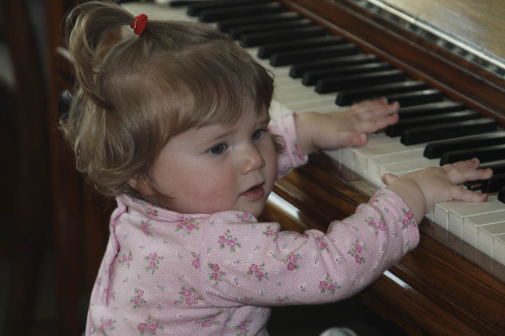 Elena likte meget godt oldemors piano i dag  🙂Elena og oldemors piano