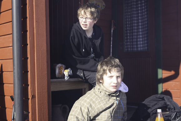 I dag gikk turen tell hytta på Ånes kor det va familietreff i godværet. Der va Evelyn, Øystein, Øyvind, Anna Malin, Arne, Silje, Håkon, Stian, Fredrik, Kirsti, Mariela, Lill og Kolbjørn. Ho Elena starta dagen med appelsin som oppladning.