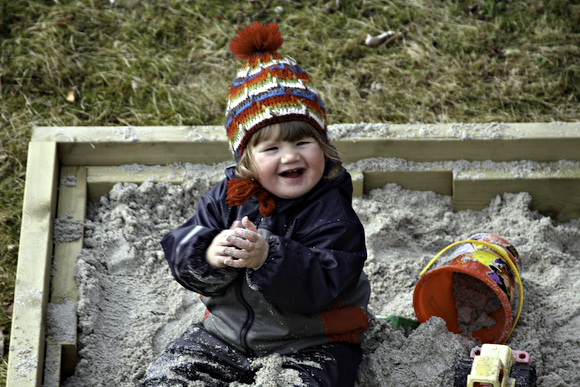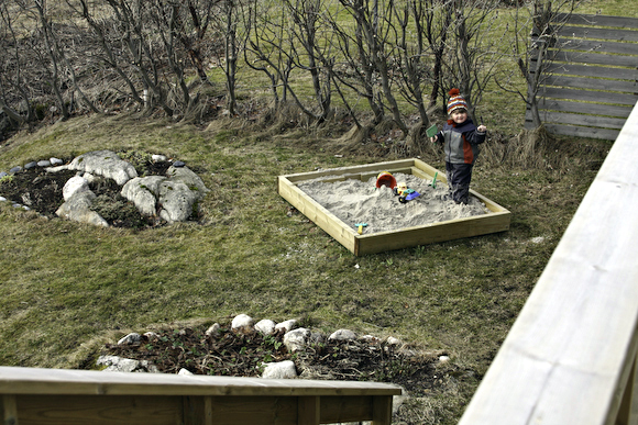 3.5.2009: Sandkassen e sentralt plassert nedfør verandaen