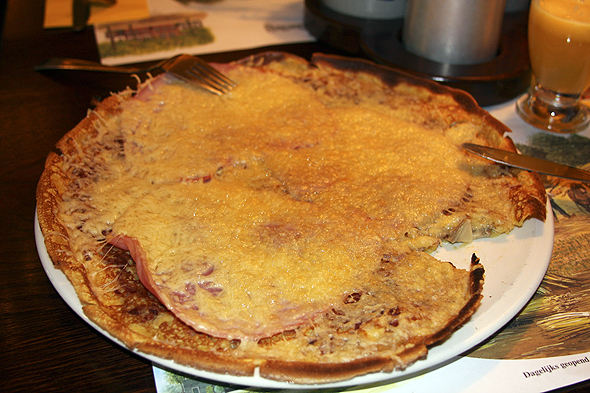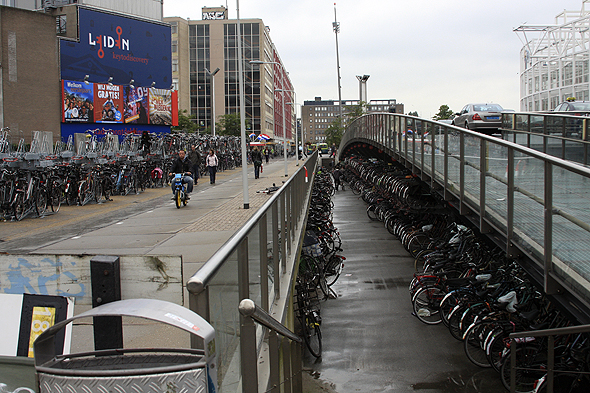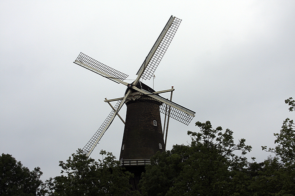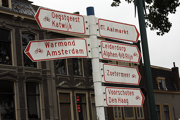 Ei flott, gammeldags vindmølla står midt i byen. Sykla kryr det av her nede, og det vises også på skiltan!