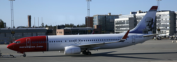 Han Kristian Birkeland, den norske nordlyspioneren e nu behørig på plass på i godt selskap et av Norwegian sine fly. Første gang æ så det i dag 🙂