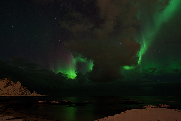 Dagen i dag starte med litt nordlys. Ikkje fra i går kveld, men kvelden før. Kom på jobb rett etter 2200 ifm ECOMA-rakett nr. 2. Da va nordlyset i gang, og æ heiv mæ over kameraet.