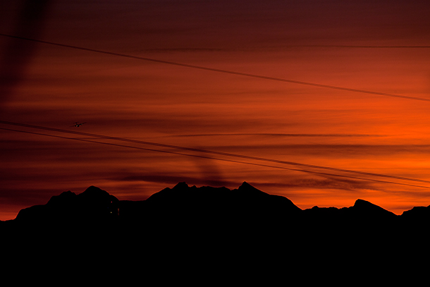 Knipsa fra verandaen under frokosten i dag. Senja-fjellan med Widerøe på tur tell Tromsø