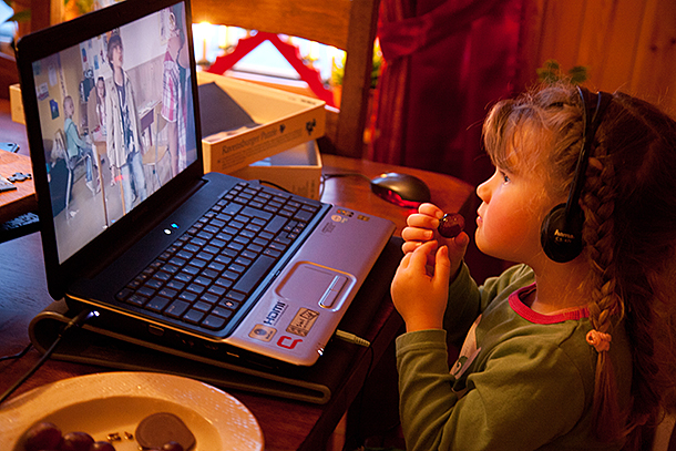 Nu ser tøtta Barne-TV på web. 3 år, kan heile alfabetet med små og store bokstava, og skriv sitt eget navn. Nu e det web-TV som tell  🙂