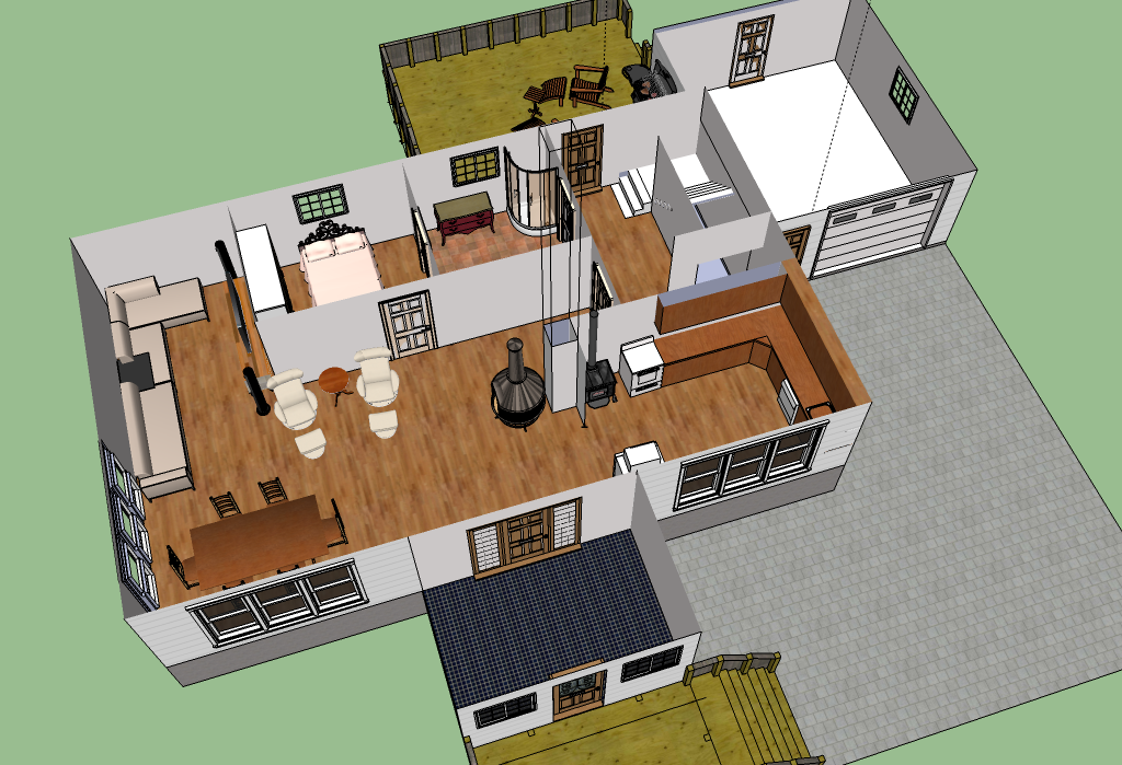 Taket tatt bort. Svartovnen på kjøkkenet e et MUST! (Kolbjørn si tegning)
