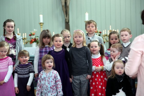 Nok en søndagsgudstjeneste med Elena og gjengen i Mini-Sing. 5 sanga sto dem før, og kjempeflink e dem!