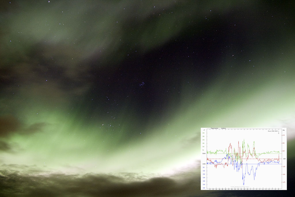 Tell dokker som sov; Dokker gikk definitivt glipp av detta! Nede til høyre ser dokker jordas magnetfelt, målt fra Andenes under det som skjedde…