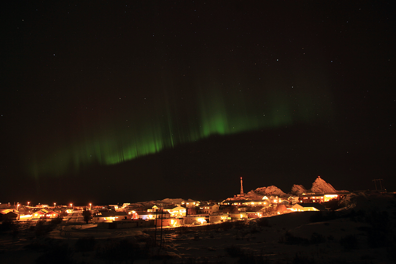 Myra mot sør. Harstad lyse opp himmelen bakerst