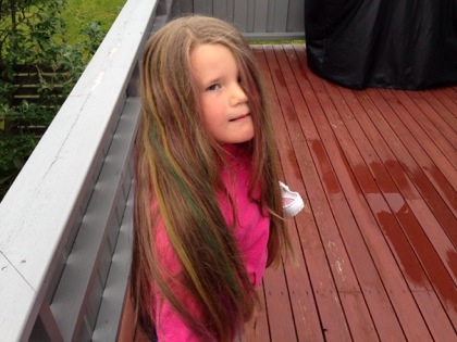 Elena va hos frisøren for første gang i dag. Stussing og farging 🙂