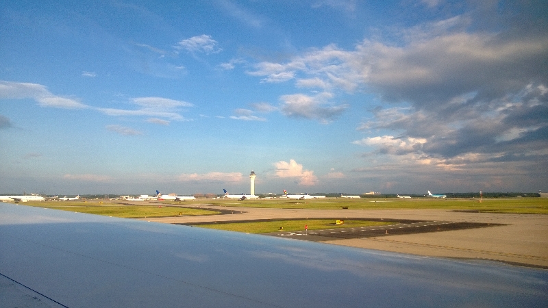 Først måtte æ bytte fly i kveld før å komme mæ fra Washington. Skulle egentlig flydd Washington – New York – Oslo. Så blei det Washington – London – Oslo. Avgang skulle vært 1755. Klokka e nu 1922 og vi sett ute på taxeveien og vente sammen med ørten andre fly som dokker ser…
