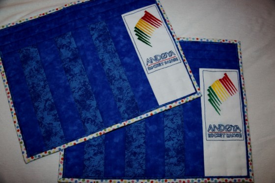 Ho svigermor Evelyn laga dissa på vel ei uka som en gave fra fam Blix Dahle tell et amerikansk vennepar. Va ikkje dissa flott?? Logo og bokstava e håndbrodert!