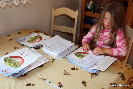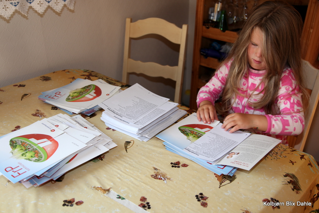 Elena bretter FrP-brosjyrer for postkasseaksjon i dag