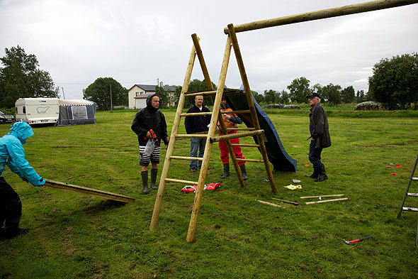 I helga, ifm Stian sin 14-årsdag har vi campa på Dverberg. Utvalgt «campingplass» va «jorda» nedfør huset tell svigers. Det starta søkke bra med at vogna sank ned i ei gjennomblaut mark med begge hjulan ifm innkjøringa. Ikkje engang en 150-hesta Subaru Outback med 4-hjulstrekk hadde nubbesjans på å få ufrøsket opp av «hengemyra» og det endte med at traktor (Ola Lønnum: takk tell dæ) måtte tilkalles før å dra den opp. Noen meter lenger øst va bakken ok, og vi kunne sette opp forteltet 🙂