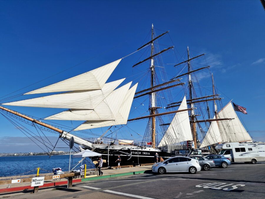 Et gammelt seilskip ved kai i San Diego