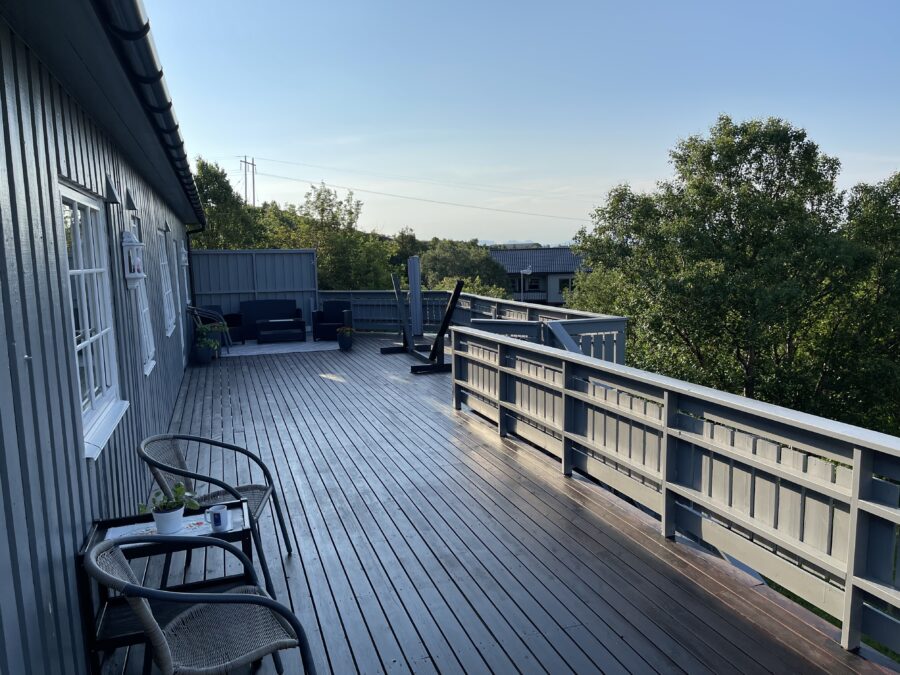 Med litt terrassebeis i samme farge som gulvet har Elena fått kaffebordet til å matcheOgså hengekøyestativet vi bygde i fjor har Elena gitt en omgang terrassebeis. Flott ble resultatet
