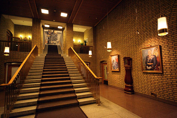 23.9 2009: Trappa opp tell Stortingssalen med Konge-bilda på sia